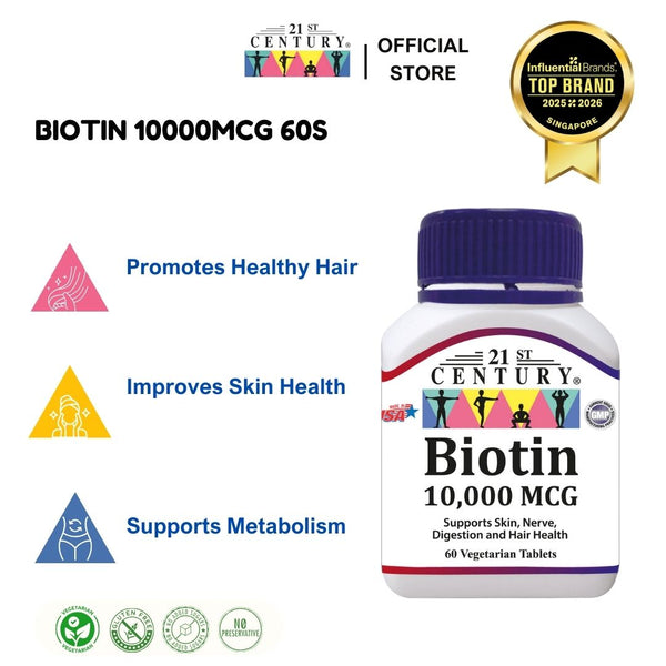 Biotin is one of the B-complex vitamins. Biotin helps support healthy hair, skin and nails and is an essential nutrient for the normal metabolism of carbohydrates, proteins and fats.
