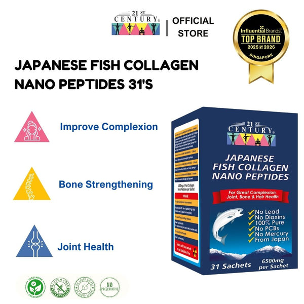 21st Century's Fish Collagen Nano Peptides are from Japan and made to the highest specifications specially for 21st Century HealthCare USA. It is not a mass manufactured low quality product like almost all other fish collagen products in the market. We have kept the price low due to our company policy of QUALITY PRODUCTS AT EVERYDAY LOW PRICES. Equivalent quality fish collagen peptide products can cost up to $180 and not just S$58. Many companies are selling at very high prices - to pay for the celebrities who have been hired to promote their less refined collagen peptides products. And these products are not even from laboratory tested manufacturers like our Japanese manufacturer who incidentally supplies to the leading brands in Japan - and now to us. Unlike other Japanese brands we have not diluted it with Vitamin C and other cheap 'fillers' to keep our cost down. We test every batch in our labs in USA to ensure high quality. Most other brands do not even have an in house lab!