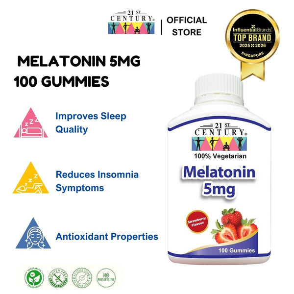 21st Century Melatonin Gummies work in harmony with your natural sleep cycle to promote relaxation and sleep. These gummies, with naturally sourced strawberry flavor, taste great too!